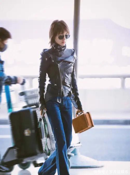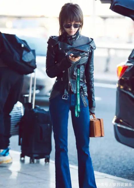 7.jpg王子文的这款黑色皮夹克搭配蓝色喇叭牛仔裤的穿搭,通过高质感的材质、利落的剪裁和巧妙的配饰搭配,完美展现了她的个性与时尚品味。整体造型既显高又显瘦,帅气中透着优雅,休闲中不失精致,是一种非常值得借鉴的时尚搭配风格。